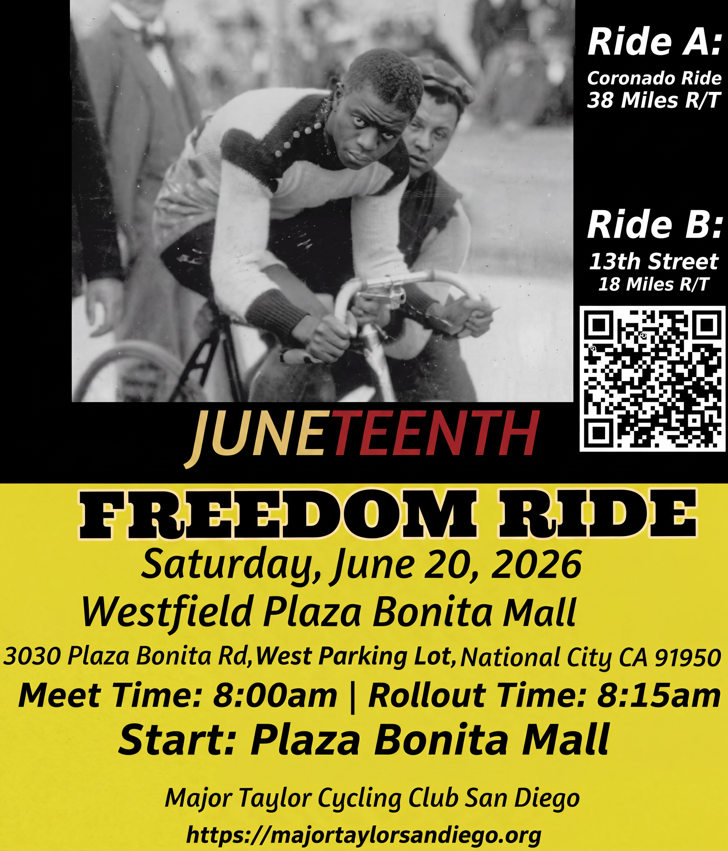 Join the Major Taylor Cycling Club San Diego for the Juneteenth Freedom Ride, a community celebration on two wheels honoring freedom and the legacy of Black cyclists.